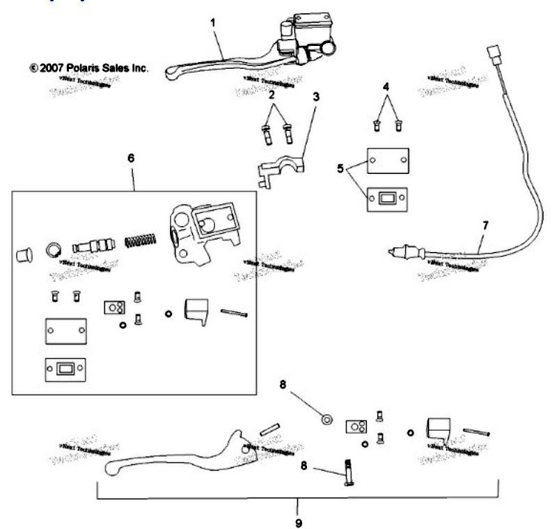 That being said, take a look at this diagram from Babbitt’s Polaris PartsHouse – it is a complete breakdown of your master cylinder assembly complete with all of the OEM part numbers. Your master cylinder is a 14mm unit, part # 1911218