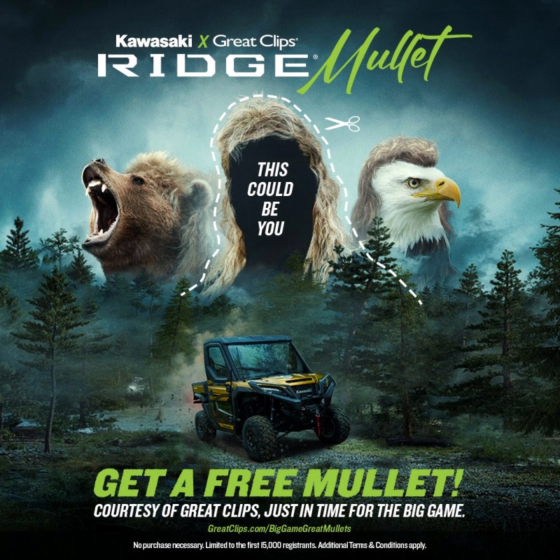 Kawasaki and Great Clips, the world’s largest salon brand, are teaming up to offer FREE MULLETS to fans as they get ready for Super Bowl Sunday to help promote the all-new Kawasaki RIDGE Side x Side.