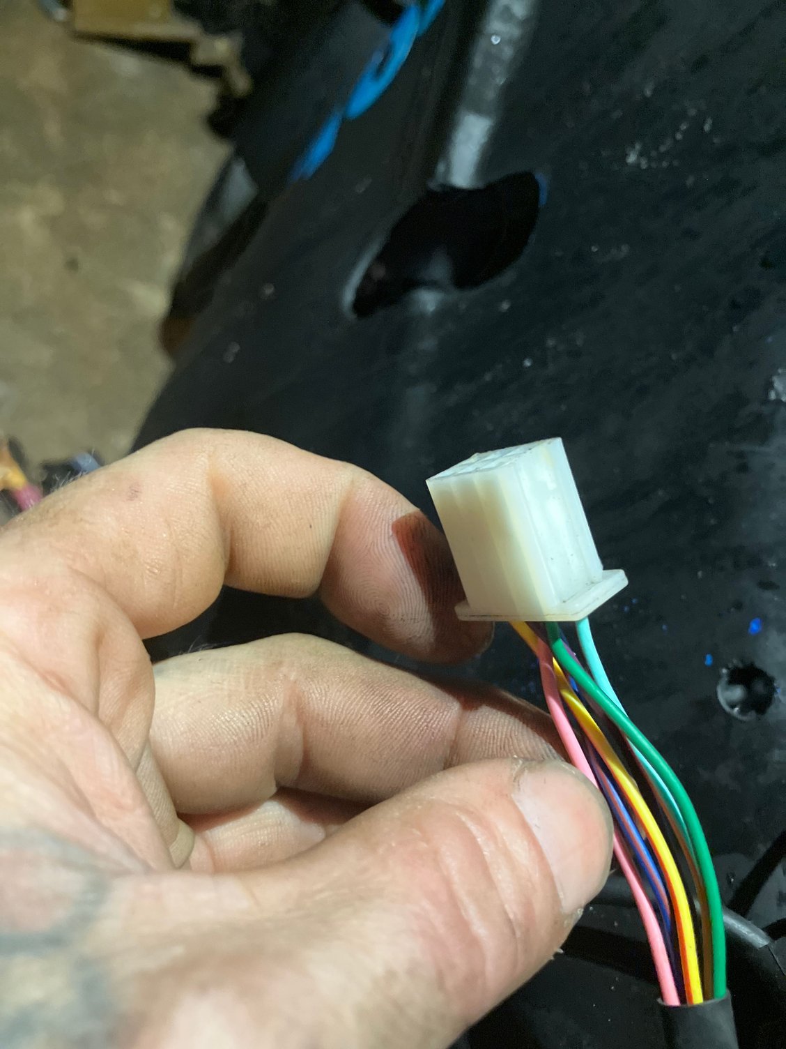 One your wiring harness side, how many wires on the connector that went to your old engine and what are the colors?