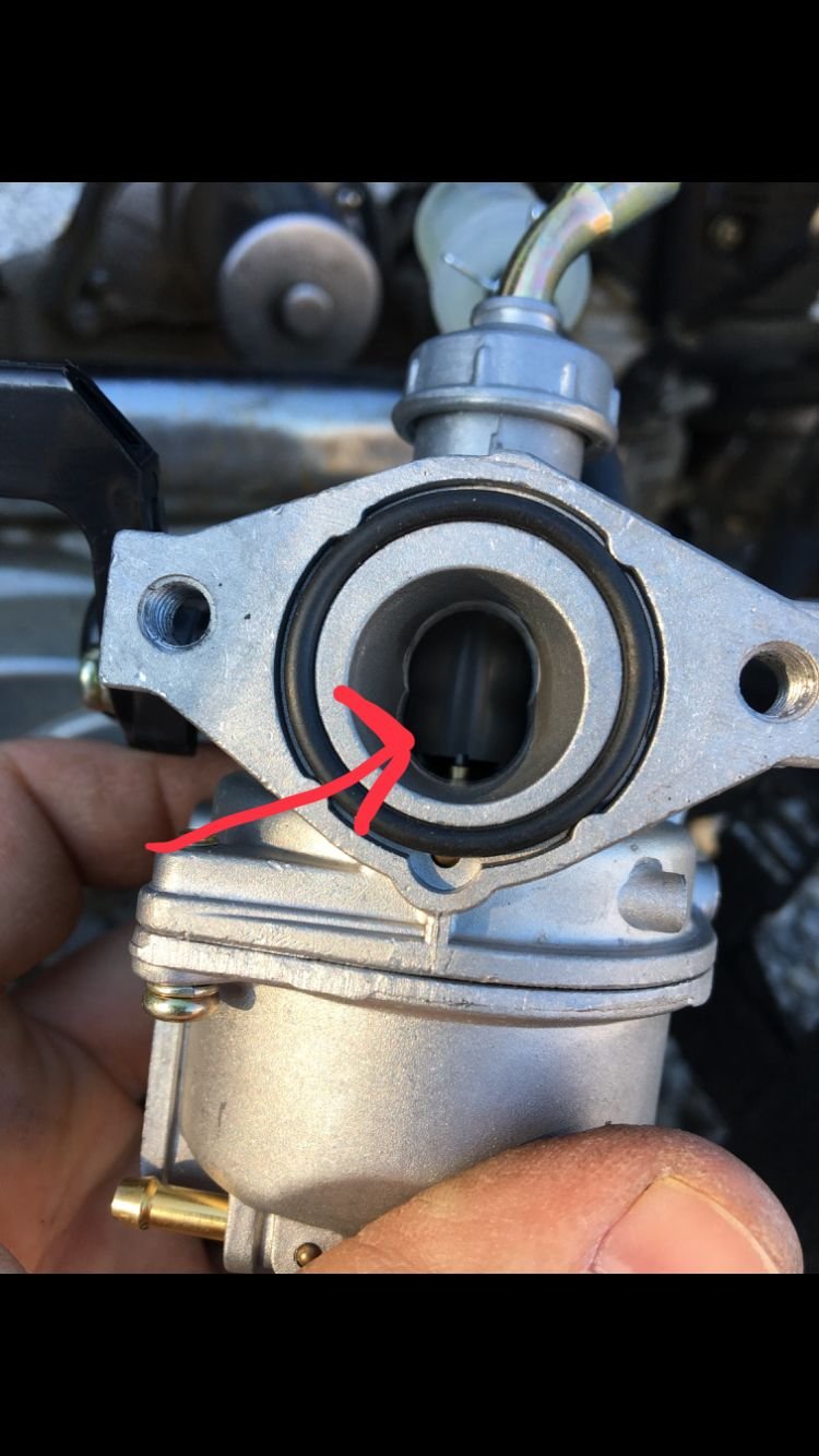 Brand new carb. I opened the box and the slide was all the way down. I put the throttle cable into the notch and put everything back together. Now the slide is open about 1/8”. I reassembled everything and, like I figured, it revs through the roof. How do I get that slide to seat down in there farther? It’s in the notched on the side of the carb housing and the idle screw is backed way out, so it’s not hitting that.