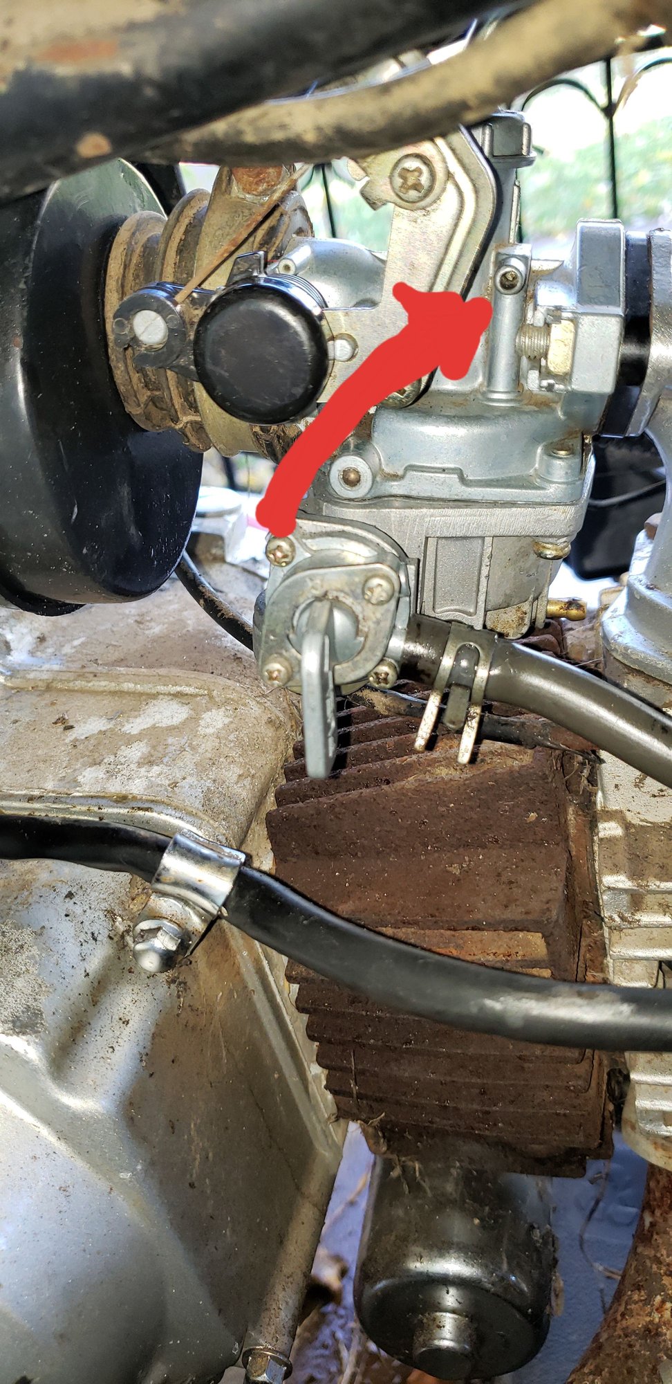 Looking at a Honda manual, that appears to be the "air screw" better known as the slow running mixture adjuster, fluid should not get past it into the carb or engine so you have a serious problem with it if it does.