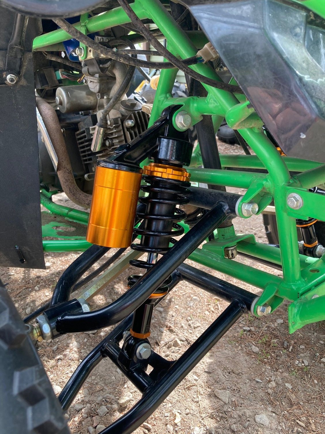 Well I got it back together, new gaskets and oil and all is well. Carb is now popping so I have a new carb on order. The factory ones on a lot of these are not adjustable and new ones are $16 so I will now have these on all three of the kids quads. Picked up some cheap air shocks as well, night and day difference in suspension. Going to run them for a few weeks and if decent enough, get some more for the others. Looking into a rear shock as well...