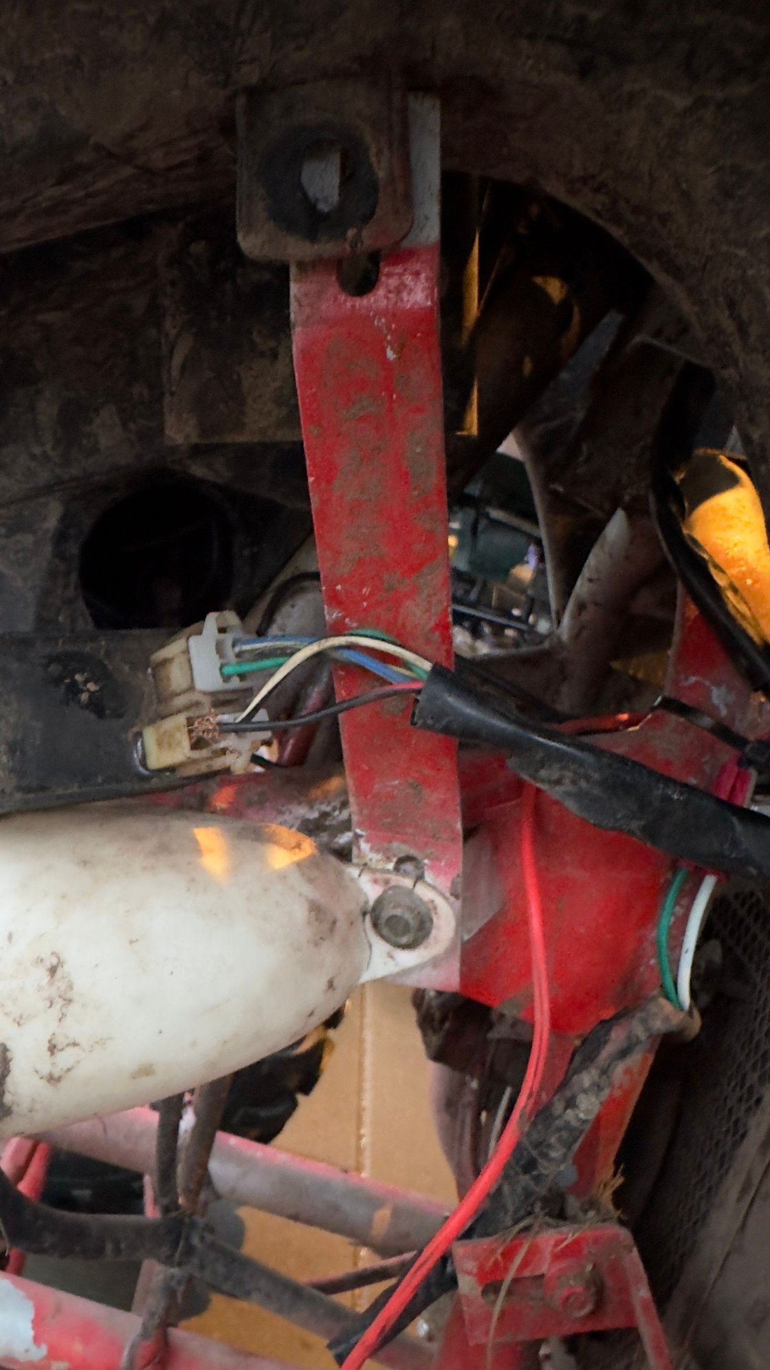 Yesterday the atv was not starting, and it also had a poor ground connection which might've melted the cable in the cdi box. I have switched out the cdi box for another used one. and made a momentarily fix to the wire that melted the cdi connection.(The white plastic was melted from the black and red cable (stator power).