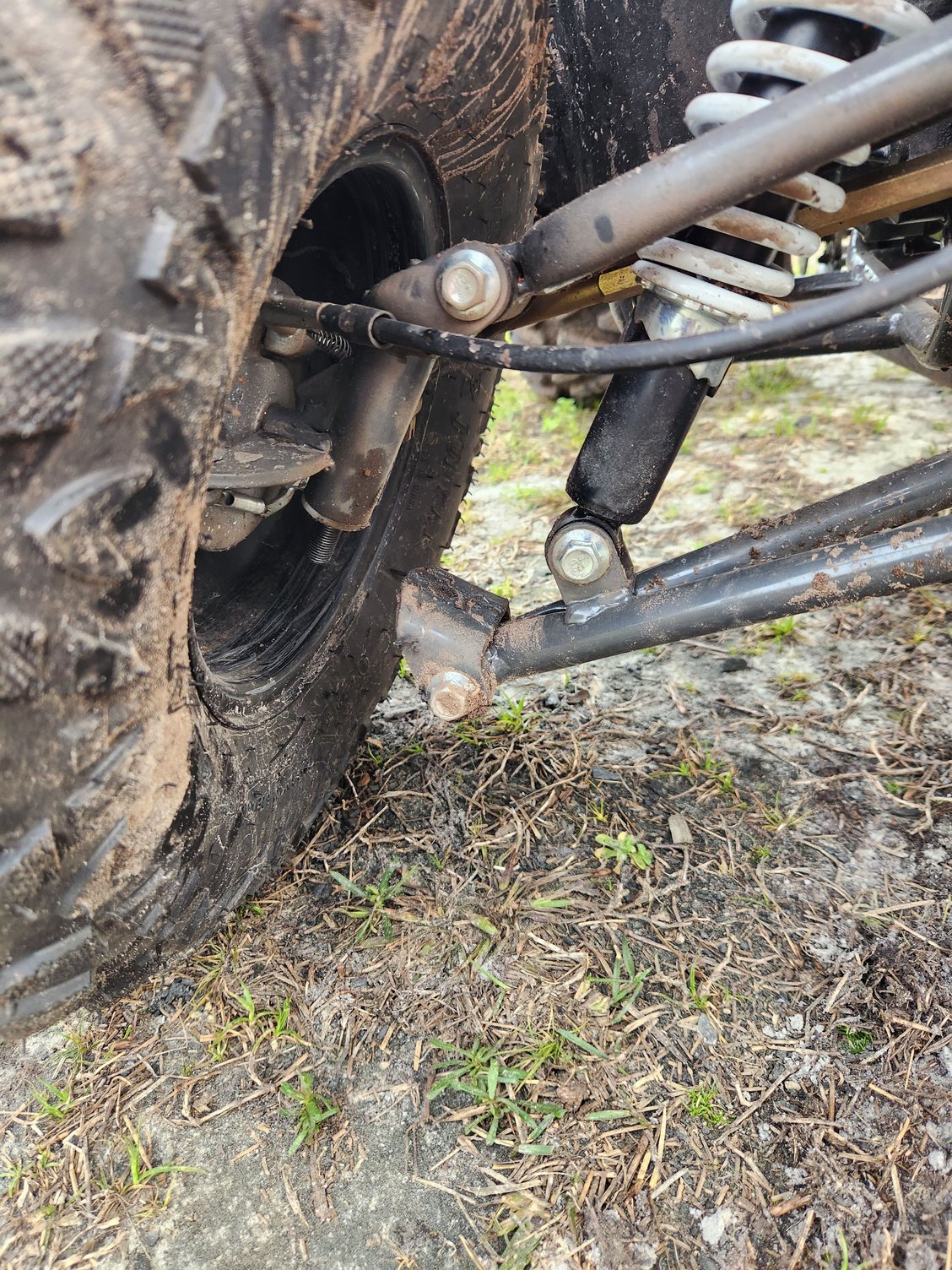 Absolutely certain it isn't. That "tab" has the swivel tube built in. On the OPs pic the swivel tube is in the A Arm. If they had cleaned it before the photo you could tell, but I would guess there won't be anything wrong with it anyway, just lost the lower spacer and nut, if it isn't a captive nut.