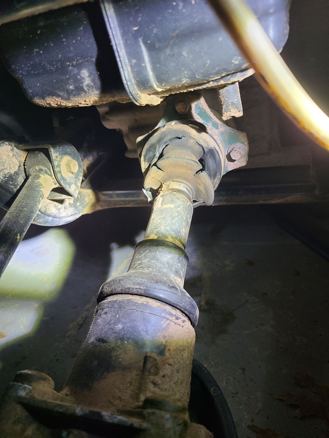 The boot over the drive coupler (?) is torn and I'm looking to replace either just the boot, or the entire shaft but I can't seem to find the right one for my model. The parts diagram for the non-FIS model doesn't look the same as my machine This is from the parts diagram for the 2003 400 FIS MANUAL TRANSMISSION (2X4), which looks more like my machine (part 35 specifically) This seems to be the correct diagram for my machine (2003 400 4X4 MANUAL TRANSMISSION) but none of these parts look familiar.