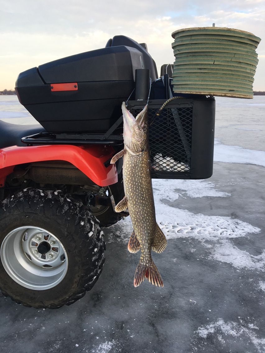 Nice Northern. Been having real good luck on a local farm pond here. Ice has been a good 9" thick and some of the lakes in the northern part of the state are 12". Time to make a trip with the4 wheeler up there.