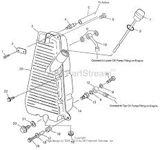 Wrong tube!! This is the oil return line from the engine. Look way at the top of the oil tank(may have to feel) there is a hose leading from it to the air box. This is the tank vent line. Clamp the vice grips close to the tank vent inlet pipe,run the engine for a couple minutes and release the vice grips.You may or may not hear air hissing from the tank,but the oil pump will be primed. The line at the very top #5.
