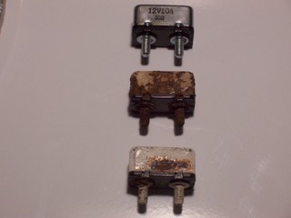 Both these areas are common problems on not electric starting along with no power to lights,etc,but you can usually pull start. On the older models the ignition is magnetically triggered not electrical triggered. The newer dci ignition systems that have to have the battery for ignition. Check that the two connectors on the left switch are clean,use dielectric grease. Slide the on/off switch back and forth to remove any corrosion from the contacts. On the sealed circuit breaker up from the battery check that you have power on the red wires on each side of the pouch. If you just have power on the battery side,split the pouch open and check out the breaker for corrosion. Even though sealed they're not water proof. Here's an old one and new one. You can get them at any auto store for a few bucks.