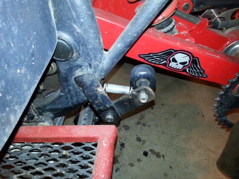 On the chain tensioner I made some steel brackets and a skateboard wheel. I took my bench grinder and used the width of the grind wheel because its the same size as a 520 chain and cut down the middle even.