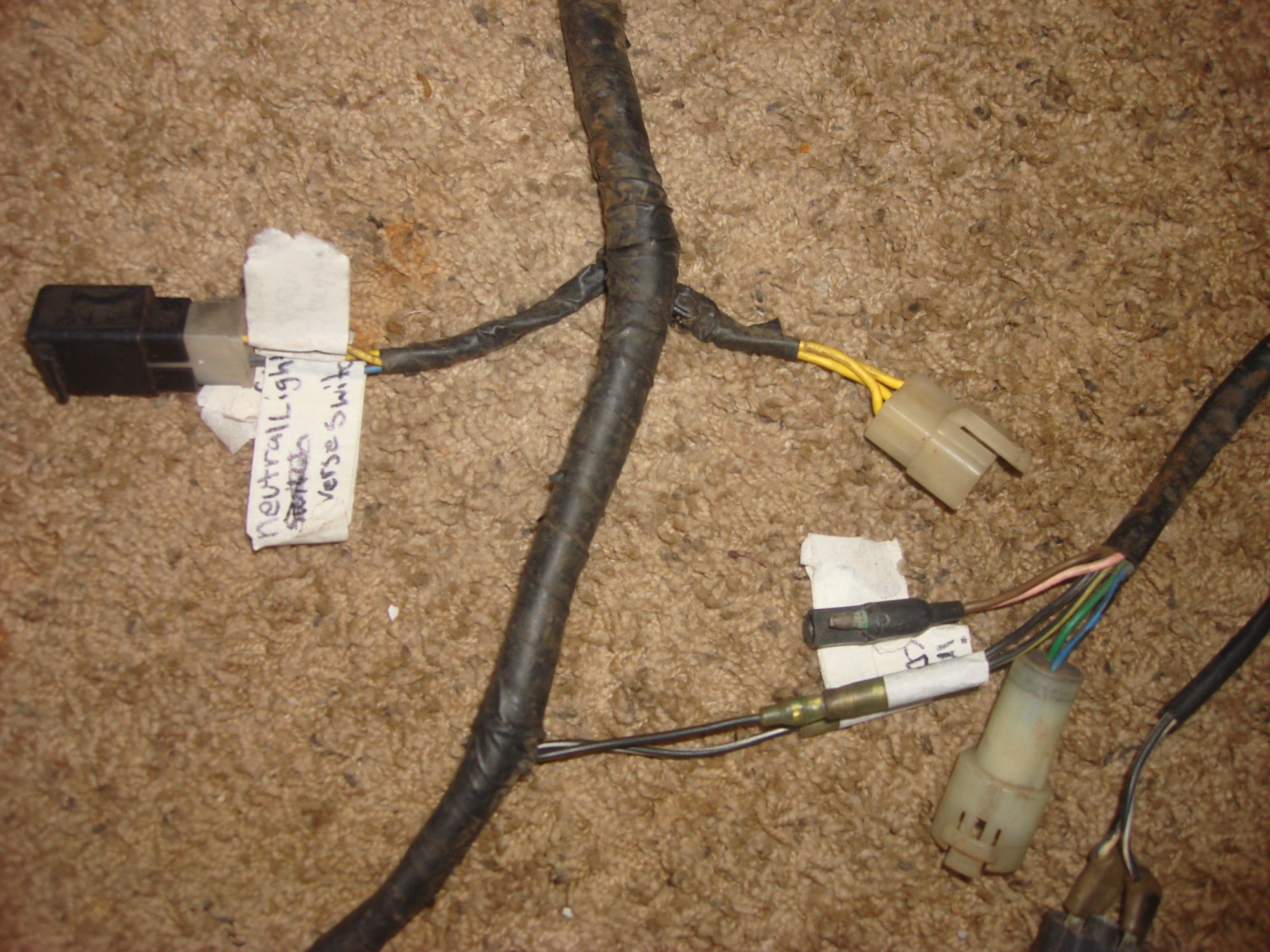 and a red wire coming out of one side of the stater connector with the three yellow wires? i think this may have been added in!!! there is no red wire on male side of connector.