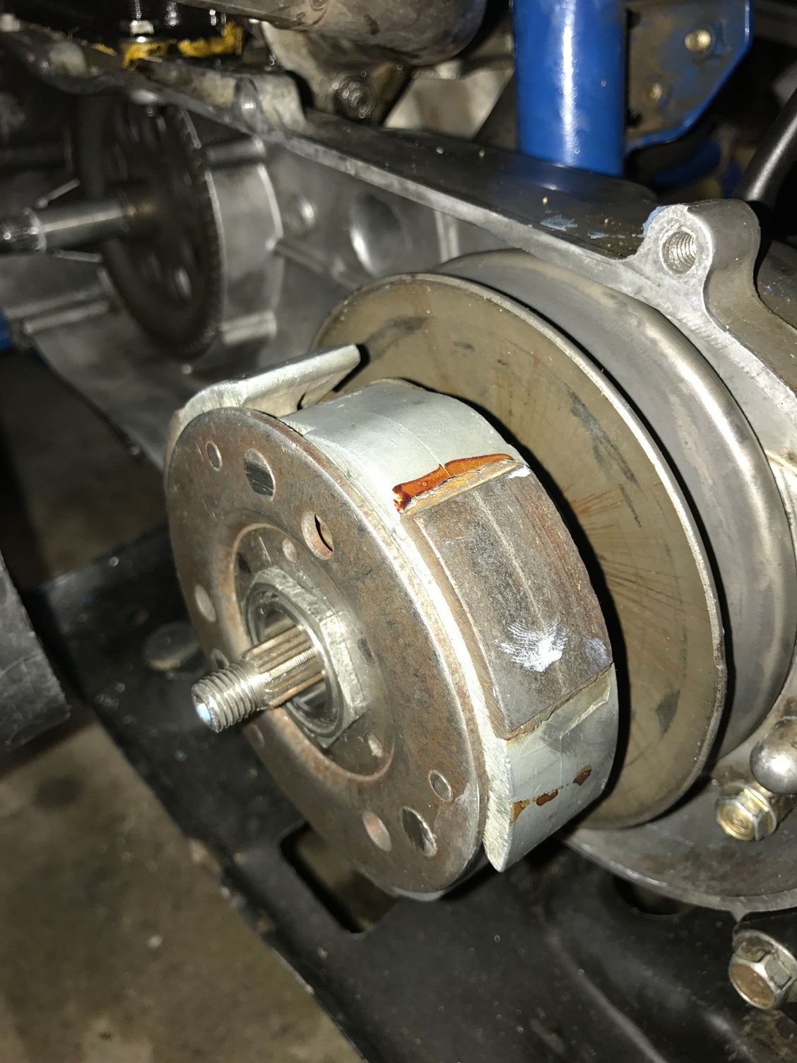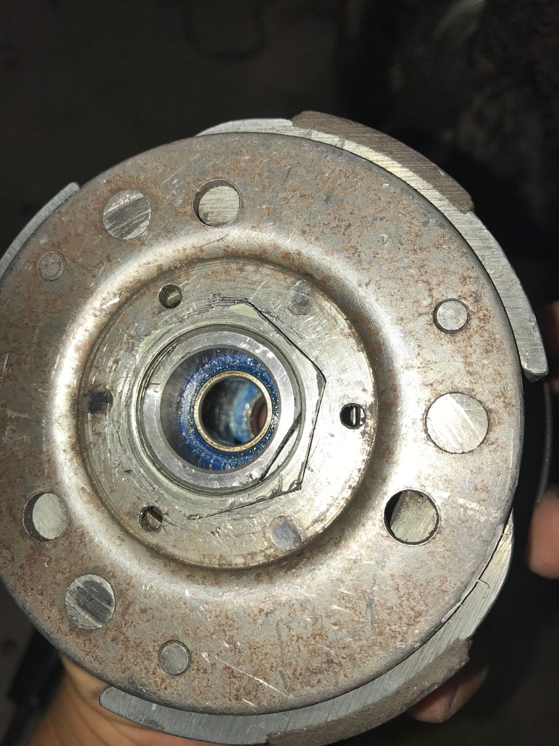 I removed the front clutch this morning and grease ozzed out from the back side. Not sure if this is normal or not. Removed one of the three screws and the others stipped. Will get them removed tonight. As for the rear, the umbrella is aligned properly with the splines. As for the nut, not sure if it is correct. I mean, all nuts are created equal, right. The nut fits with ease so I know the thread is correct. When I got the ATV all the mechanical parts were in a box, so I followed diagrams and orderd most of the parts from ebay or babbits.com. With the front clutch removed I will see if the tires roll with little friction. When everything is connected the rear are very hard to move and sometimes it will turn the front fly wheel and I can hear the piston move up and down down the cylinder. Not normal. The rear clutch pads are pretty thin and will need to be replaced eventually, but I don't think that would be the cause of my current issues. I'll update what I find when I disassemble the front clutch.