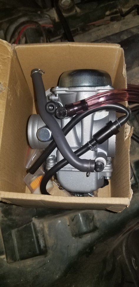 I recently Joined this forum looking for a few answers if I can find them. I have a 2002 Suzuki 500 Vinson auto that is having carburetor trouble, It was corroded badly and I tried to do a rebuild but I cant get it to run without the choke on full. I put a new petcock valve on the the fuel tank. I was considering getting another replacement Carb but when I look at them they don't seem to have the vacuum for the fuel and the idle adjustment don't wrap underneath like mine does. Does anyone have any suggestions that might help me out?