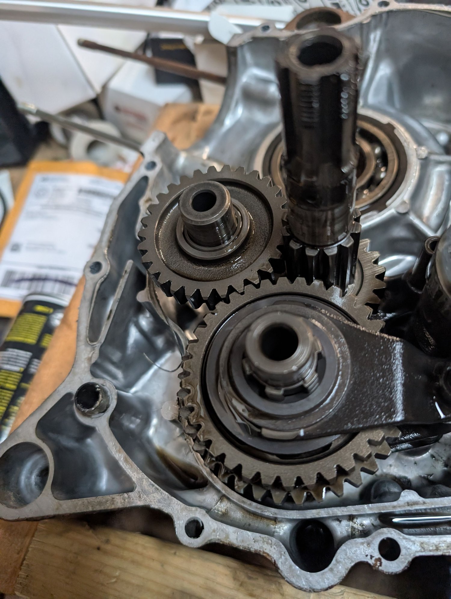So, tear it back down, clean the sealant off and get the almost correct 230e crank installed. Turns out my crank was from a 87 model E. Which has a different design than 88 and up. The wet clutch one way bearing and its inner race is of an older design. That pretty much brings us to current. I'm waiting on the correct parts for this crank because there is no way in hell I'm splitting the cases again.