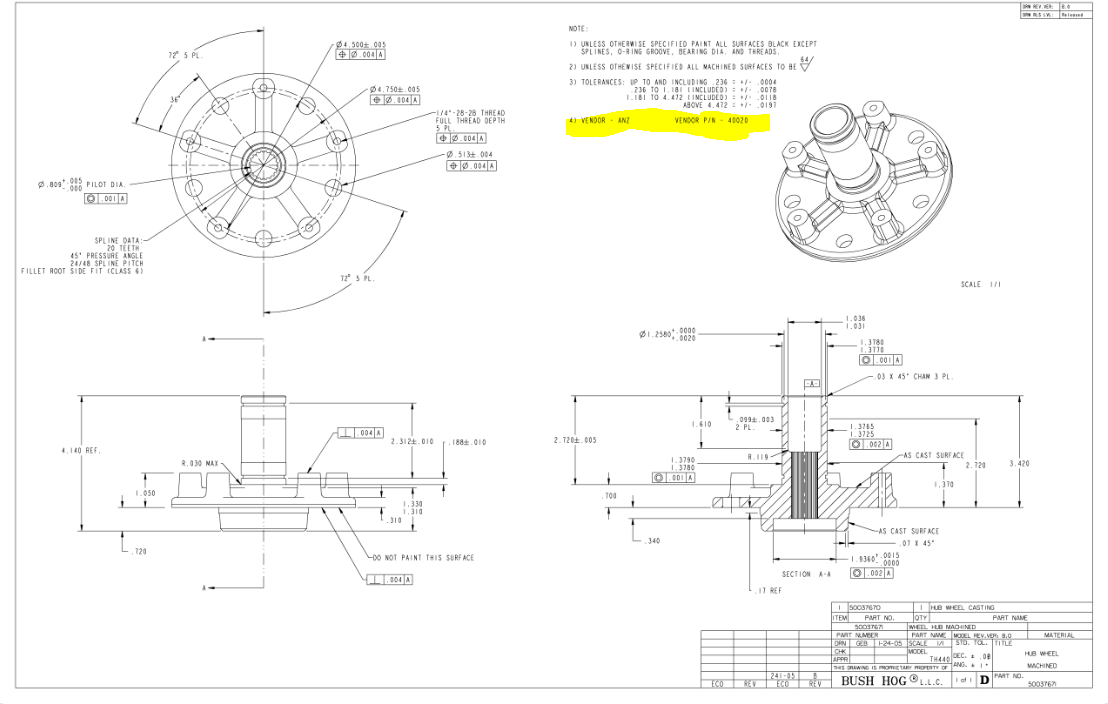 I have these Schematics that I got from Bush Hog. They said the 50037671 hub (Front Hub for the Bush Hog TH4400 & 4430 UTV's) was provided from a company called ANZ with their part# 40020. But I couldn't find the company anywhere. Here's the Schematics I got tho, I would also be interested in a machined hub if you have the stuff to machine them. 🤔
