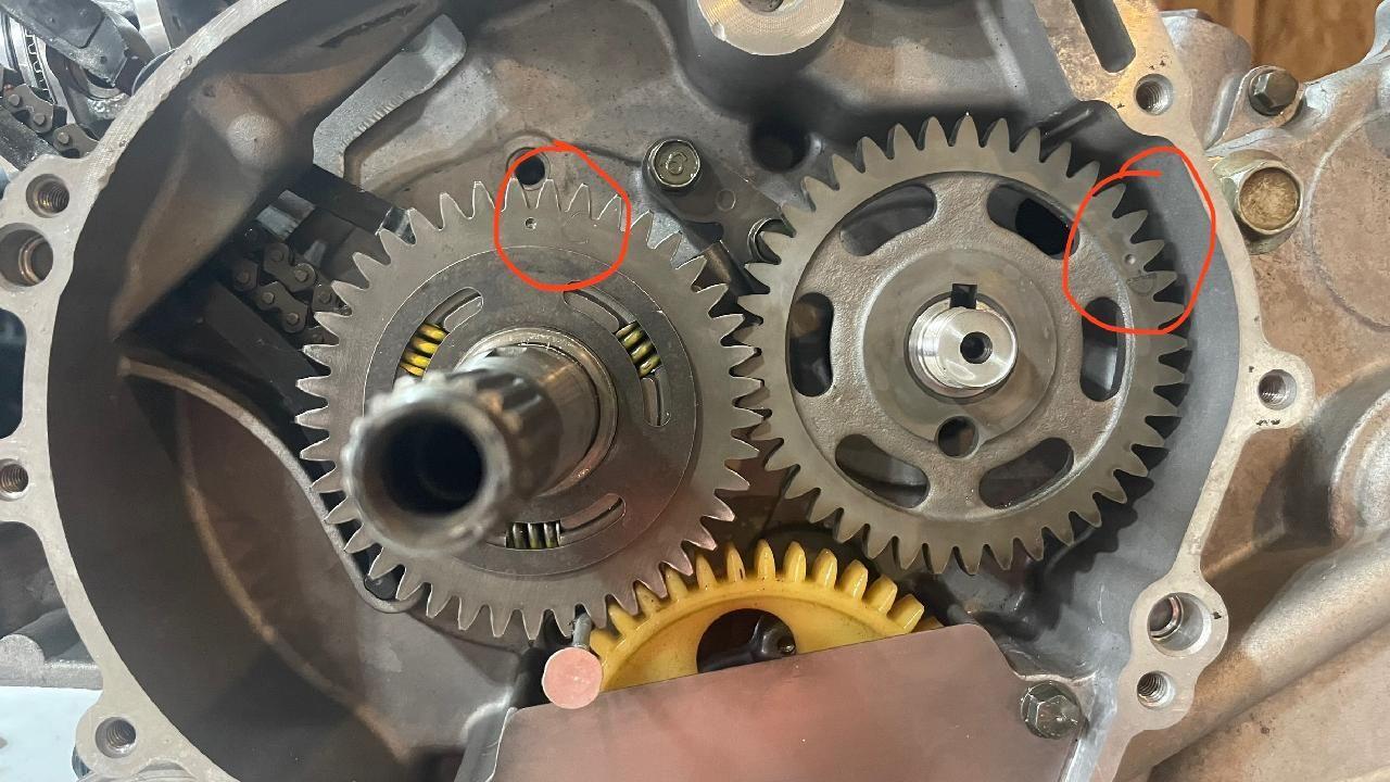 Need information, I killed a rod bearing, tore the engine apart and hauled the crank into the local machine shop. He located and installed a rod kit for me no problem.The problem is that when I tore it apart,the right side bearing stayed in the case and the oil pump and counterbalancer gears pulled off the crank.I NEED to find out the placement of the counterbalancer gear in relation to TDC. PLEASE HELP