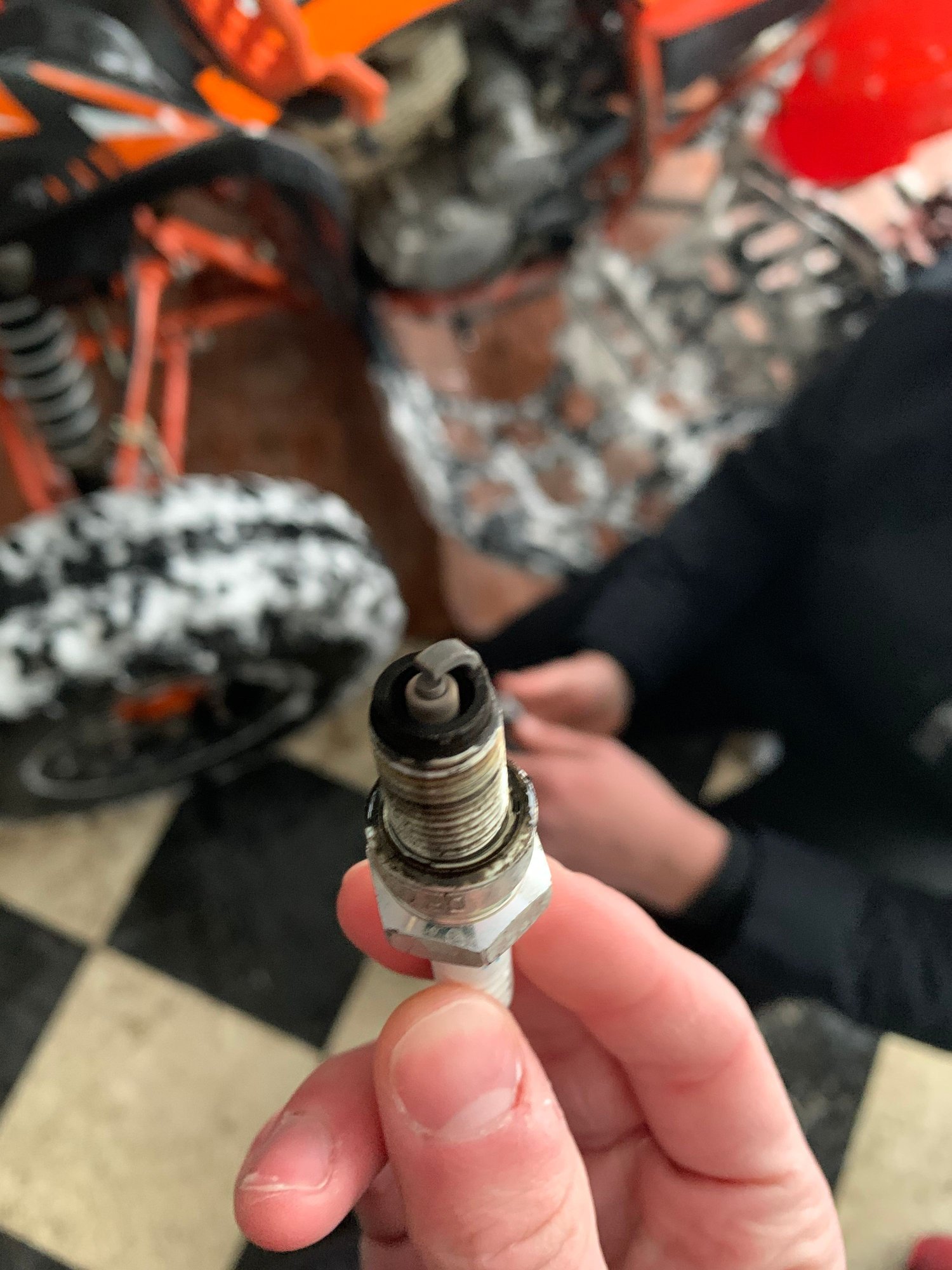 Hard to see from your pic, tip looks light gray but around the thread looks black, is that black an oily residue? For most accurate plug reading.....go for a short ride, run it fairly hard and shut off the engine while cruising down the road, pull plug and read it without the engine comming down on idle. It is the running color you need, not the idle color.