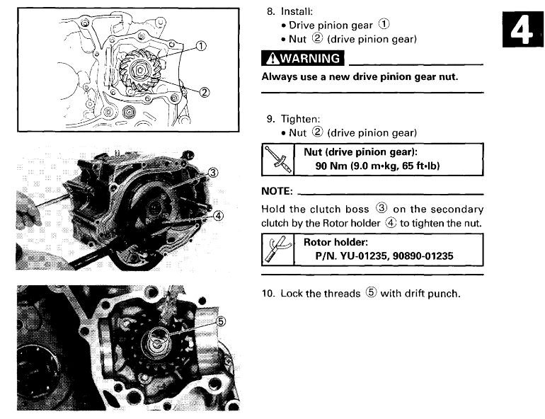 Good advice, thank you very much! I even tried finding a "non-Yamaha" punch nut but it seems to be a pretty unique size - M16x1.0 - and so far I've come up short. Looks like I'll be re-using the existing nut; hunting season is almost upon us and I need to get up and running again.